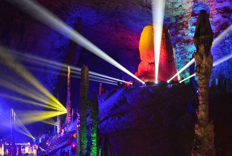 黃龍洞,又名黃龍泉,因相傳遠古時期黃龍藏身而得名,明清時期曾有“干死當門田、莫打黃龍泉”的神秘傳說。黃龍洞,是一座形成于3.8億年的大自然迷宮,是一顆由8個土家族漢子1983年發現的地下明珠,是一個年接待上百萬游客的風景勝地,是一個旅游總收入在全國溶洞同行排名第一的知名景區,是全球唯一擁有“中國馳名商標”的旅游洞穴。經過近30年的開發建設,黃龍洞已成為世界自然遺產、世界地質公園、中國首批5A級旅游區、全國文明風景旅游區張家界武陵源的王牌景區。