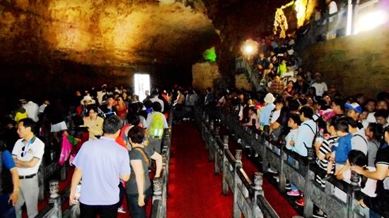 張家界新聞網10月19日訊(通訊員:毛建初)早上7點,黃龍洞景區還未到上班時間,驗票處游客就已經排起長龍。統計數字表明,近一個星期景區接待游客42323人,和去年同期17462人相比增加142.37%.